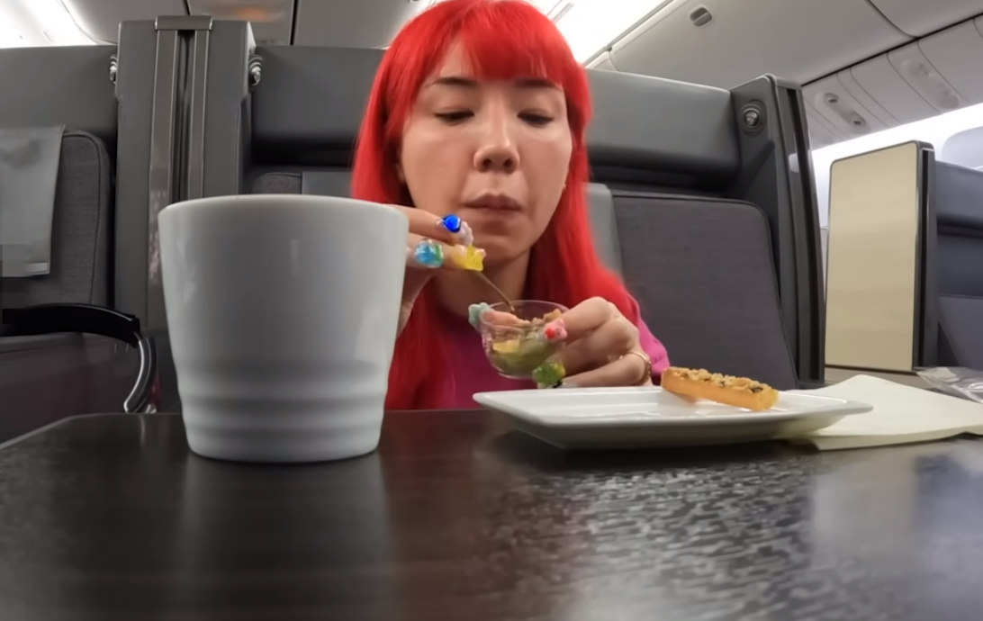息子と豪華な食事を機内で食べる姿や、旅行を満喫する様子も。この親子の姿にファンは