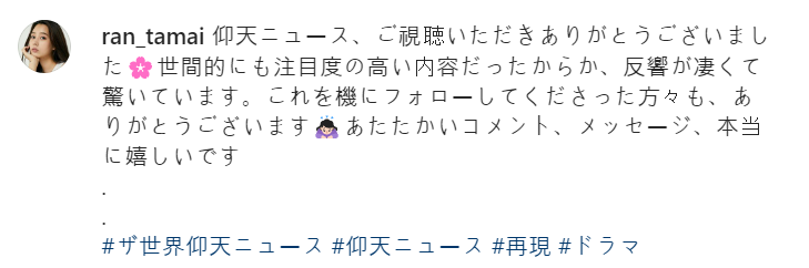 今回仰天ニュースにて反響になったことは本人も気づいているようで、自身のインスタグラムにも下記のように投稿していました。