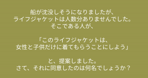 「このライフジャケットは、女性と子供だけに着てもらうことにしよう」