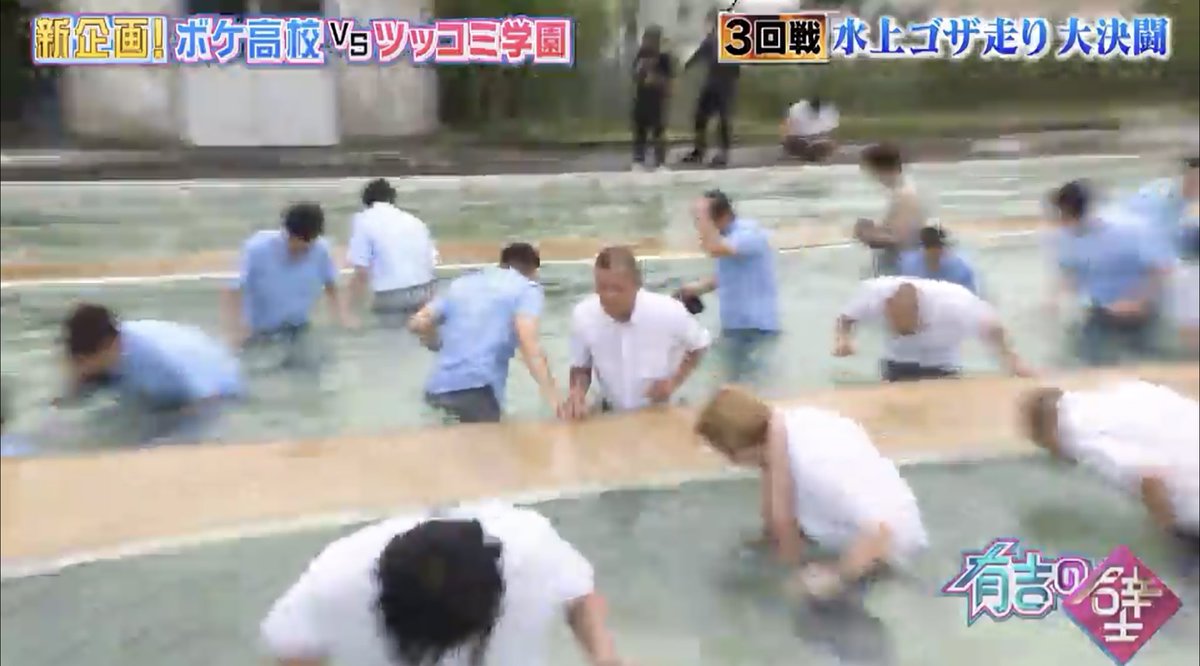 28日、「有吉の壁」放送の企画「ボケ高校 VS ツッコミ学園」の3回戦「推移嬢ゴザ走り大決闘」でプールに浮かべられたゴザの上を走っている途中に転倒したためか、「U字工事」益子卓郎さんが結婚指輪をまさかの紛失しました。