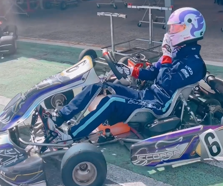 レーシングスーツを着用する姿から動画に収められており、