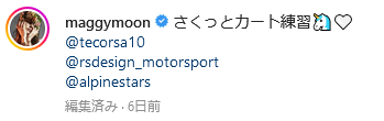 モータースポーツ好きのマギーさんは自らハンドルを握ることもあり、