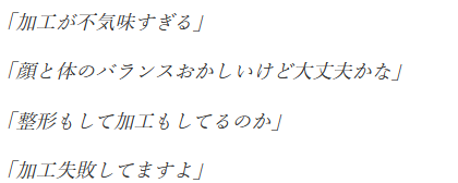 この不自然さは加工によるものなのか分かりませんが、厳しい視線が向けられてしまったのでした。