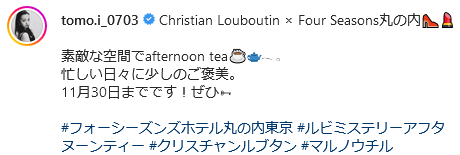先日、期間限定のアフタヌーンティーに足を運んだことをインスタグラムで報告しました。