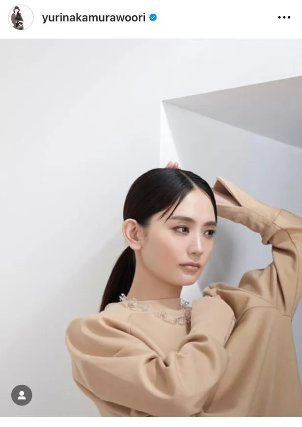 今回投稿された写真は小ぶりなイヤリングや指輪、輝くバングルなど控えめなアクセサリーが中村さんの肌の美しさや美麗な雰囲気を醸し出し、引き込まれる1枚となっています。