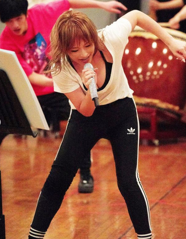 今回のショットは、ライブのリハーサル風景のようでいつもの豪華な派手な衣装とはかけ離れたシンプルスポーティーなTシャツとボディラインが強調されるアディダスのパンツで、リハーサルにも全力で取り組んでいる姿が見られましたが全力になり過ぎで、大胆に下着姿を大披露してしまっていると話題になっています。