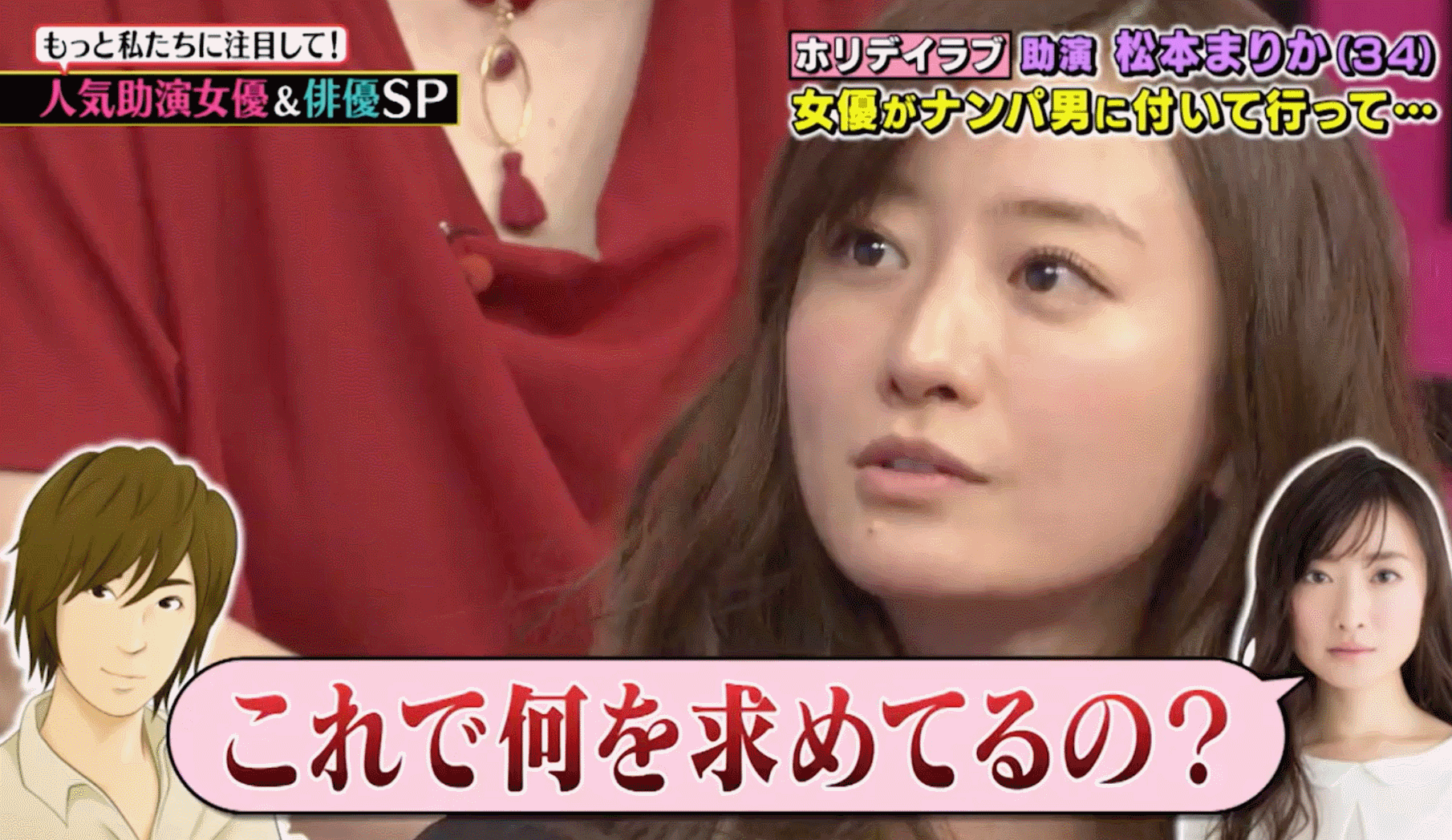 TBSの『有田哲平の夢なら醒めないで』では松本まりかさんの過去の恋愛やナンパ体験について話していました。恋愛においては超ド級のSであると明かす松本は「ナンパを受け入れてみようと思ったんですね。いつもナンパを無視するって、それは偏見なんじゃないかと思って」と、初対面の男性と居酒屋に行ったことがあるそうです。