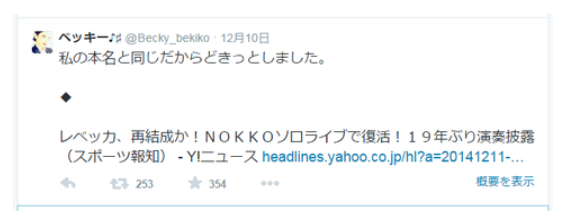 この、レベッカ再結成のニュースに、Twitterで反応したのがベッキーでした。