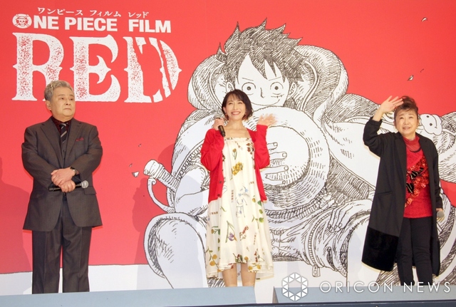 今月29日に終映する人気アニメ『ONE PIECE』の新作映画『ONE PIECE FILM RED』の終映直前舞台あいさつが15日、都内で行われ、出演者の田中真弓(ルフィ役)名塚佳織(ウタ役)、池田秀一(シャンクス役)、谷口悟朗監督が出席しました。