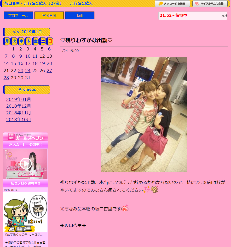 当時に、ほぼ毎日更新していた写メ日記にアップされた写真で、コメント欄には、このように予約を呼びかけていました。