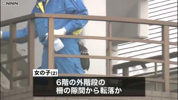 この事件当時、父親は仕事で外出中、母親も娘を幼稚園に送るために外出中だったそうで、この2歳の女の子は1人でいたと考えられます。そうなると、二歳児が家からでて、歩き外階段まで出るというのは可能なのでしょうか・・・?階段の柵もかなり高いように見えます。