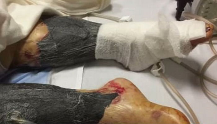 たった二日後、健康状態が急速に悪化しました。すねの部分の皮膚は壊死までに至り、担当医師は彼女が「ビブリオ属菌敗血症」に感染したと診断しました。