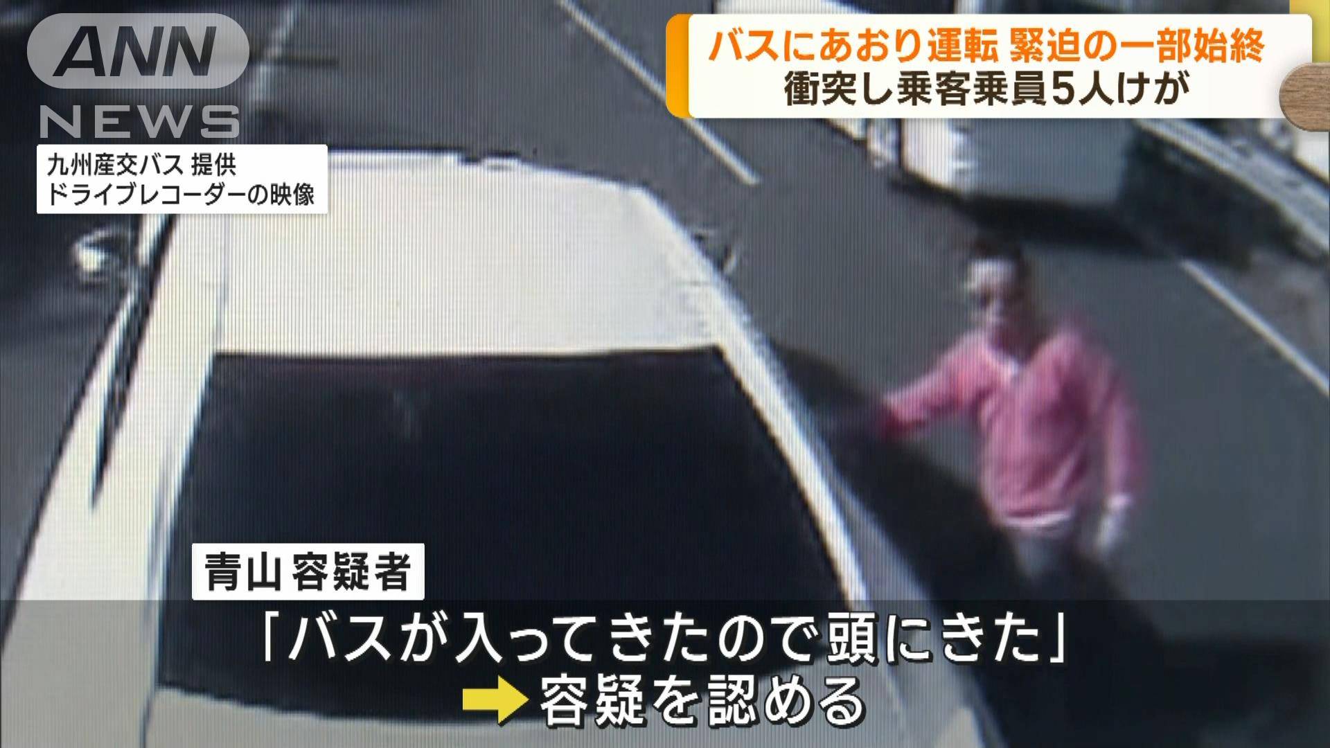 その結果… 「ガシャーン」とバスはブレーキが間に合わず追突してしまいました。すると… スポーツカーの運転手は車を降り、「おい。お前が出てきたけん当たったやろ、さっき。ドライブレコーダーつけとるけん、警察呼べよ」と怒鳴っています。 この事故で、バスの運転手や乗客合わせて5人がいずれも軽傷だがケガをしました。