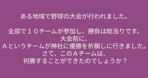 大会前に、Aというチームが神社に優勝を祈願しに行きました。