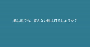 ”瓶は瓶でも、買えない瓶は何でしょうか?” かなり簡単なクイズ問題!解けないとやばい? 今回ご紹介するのは脳トレクイズです。 問題 瓶は瓶でも、買えない瓶は何でしょうか? Google ADVERTISEMENT Google あなたはわかりましたか? それでは答え合わせに行きましょう! Google 答えは、、、「火炎瓶」 ADVERTISEMENT 「買えない瓶」を略して言うと「買えん瓶」です。買えん瓶だけに「火炎瓶」が答えになります。 Google ADVERTISEMENT あなたは間違えずに解けたでしょうか! Google [著作権者VONVON /無断コピー、無断転載および再配布禁止(違反時の法的措置) ADVERTISEMENT