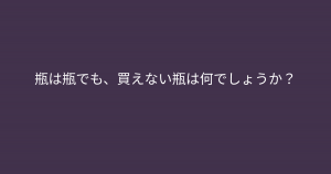 ”瓶は瓶でも、買えない瓶は何でしょうか?” あなたにはすぐにわかりますか? 今回ご紹介するのは脳トレクイズです。 問題 瓶は瓶でも、買えない瓶は何でしょうか? Google ADVERTISEMENT Google あなたはわかりましたか? それでは答え合わせに行きましょう! Google 答えは、、、「火炎瓶」 ADVERTISEMENT 「買えない瓶」を略して言うと「買えん瓶」です。買えん瓶だけに「火炎瓶」が答えになります。 Google ADVERTISEMENT あなたは間違えずに解けたでしょうか! Google [著作権者VONVON /無断コピー、無断転載および再配布禁止(違反時の法的措置) ADVERTISEMENT