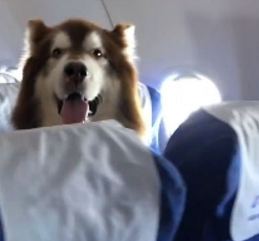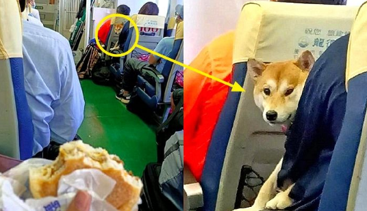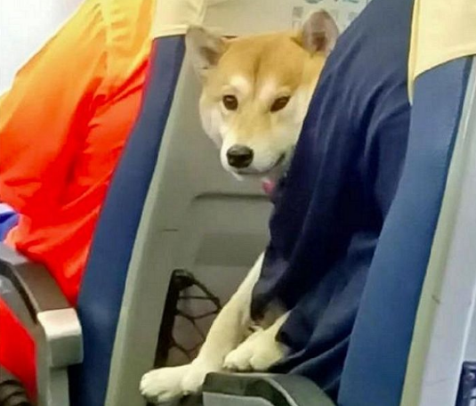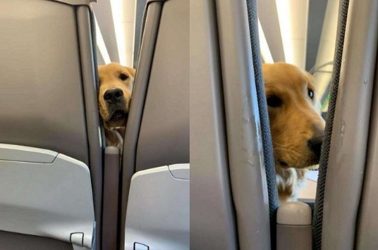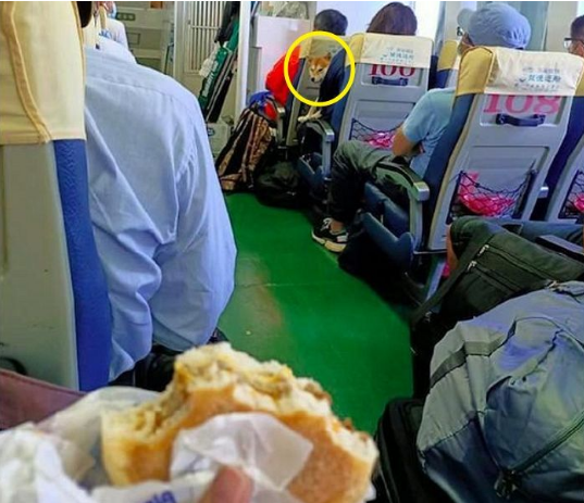 近年では公共交通機関でペット同伴も承諾しているところもありますが、動物というのはどうしても食べ物の匂いに反応してしまう様子。こちらの2枚の写真は飛行機に同情しているペットが機内食を狙うべく思わず反応してしまった時の写真のようですが、このように見られてしまうと確かに食が進まなくなってしまう気持ちも分からなくはないです。