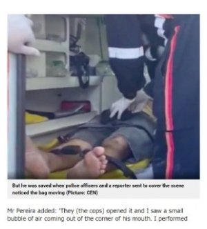 リポーターは、「私が現場に到着した時、遺体袋はすでに閉じられていました。(遺体袋が動いていたので)警察官が袋を開けると、中にいた男性の口の端に小さく泡ができていて息をしていることが分かったのです。私は直感的に助けなければと思い、すぐに10分ほど心肺蘇生を施しました。」と、当時の様子を語りました。