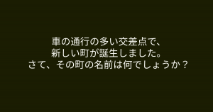 「車の通行の多い交差点で、新しい町が誕生しました。」 頭の回転が速い人にしか解けない難問クイズ! 今回ご紹介するのは脳トレクイズです。 問題 : 車の通行の多い交差点で、新しい町が誕生しました。 さて、その町の名前は何でしょうか? Google ADVERTISEMENT Google あなたはわかりましたか? それでは答え合わせに行きましょう! Google 答えは、、、「信号待ち」 ADVERTISEMENT 交差点には信号があります。車の交通量が多い交差点の場合、まちはまちでも「信号待ち」がうまれます。 Google ADVERTISEMENT あなたは間違えずに解けたでしょうか! Google [著作権者VONVON /無断コピー、無断転載および再配布禁止(違反時の法的措置) ADVERTISEMENT