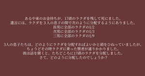 遺言には、ラクダを3人の息子の間で次のように分配するようにありました。