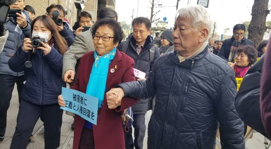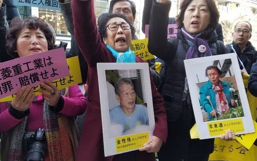 17日午後12時、東京千代田区の三菱重工業本社前で勤労挺身隊被害者であり91歳のヤン・クムドク氏は「謝罪を受けたい」という言葉を何度も繰り返しました。