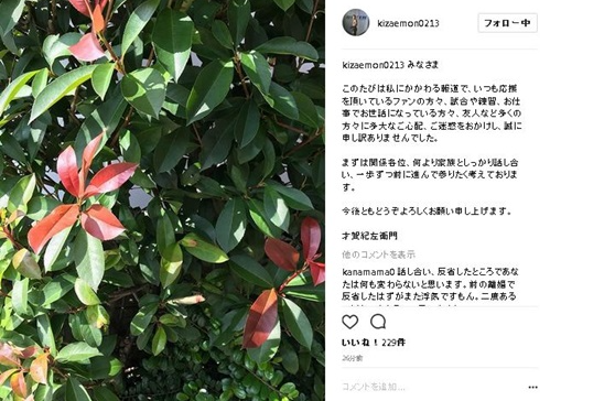 続いて才賀さんの方も、ファンの方々、関係者、友人などに謝罪し、今後については家族を中心に話し合い、一歩ずつ進んでいきたいとしています。