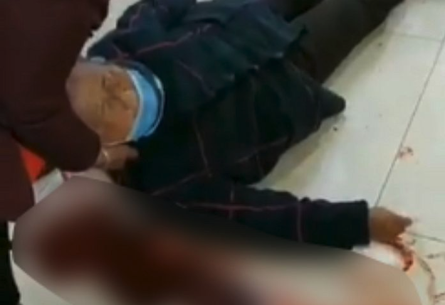 刃物で刺されてしまった2人は、床に倒れこんでいます。