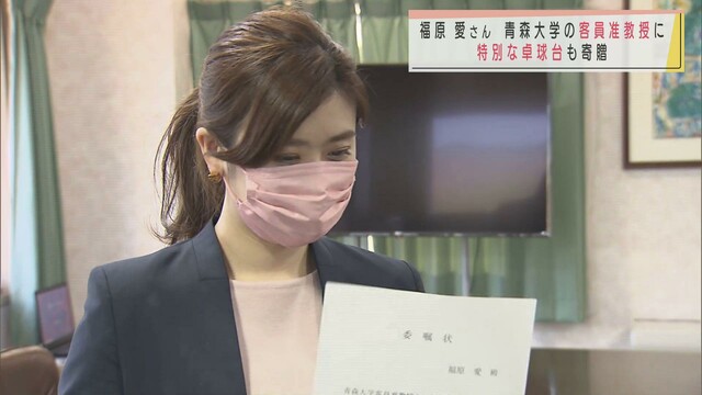 卓球元・日本代表の福原愛さんが、青森山田学園に障害がある人でも楽しめる卓球台を贈り、合わせて青森大学からは、客員准教授を委嘱されたのでした。