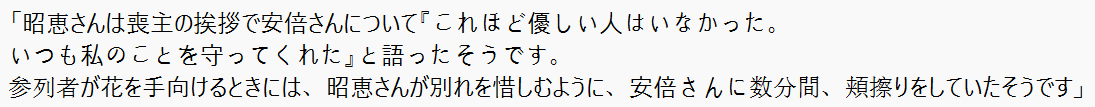 喪主を務めたのは妻の昭恵さんでしたが、事件当日から葬儀までの4日が経った頃でも現実を受け止めきれていない様子でした。