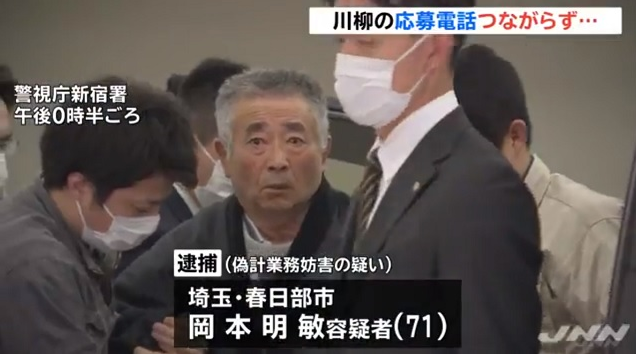 さらに、岡本容疑者がこのような行動に走った動機が超絶ヤバいと話題になっており、なんと「時事川柳」のラジオ番組宛ての電話が繋がらなかったため、とのこと。電話が繋がらなかったという理由で自身が契約していたKDDIにいちゃもんを付けたのでしょうか?もし、これでラジオ番組の電話が繋がった際には、ラジオ番組にクレームの電話をかけ続けていたのかな?と思うと、鳥肌が立ちますね。