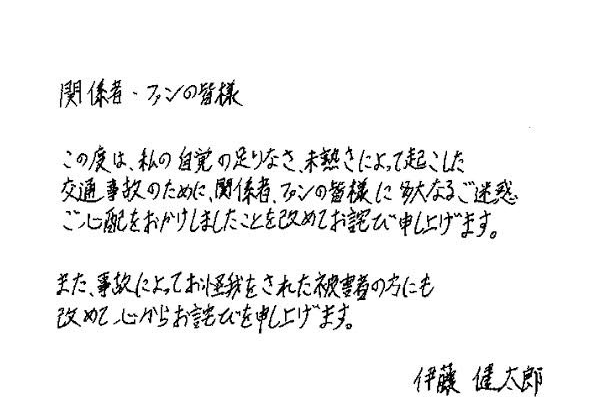 伊藤健太郎がひき逃げの件で直筆謝罪文も…?