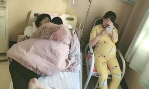 それは中国での出来事。臨月を迎え、出産のために入院している妻のため、夜勤明けで病院に面会に来た夫が疲れがピークに達していたのか、妻がしばらくベッドを空けた途端に眠りについてしまいました。どうやらしばらく横になっていようと思っていたようですが、思わず寝てしまったようですね。