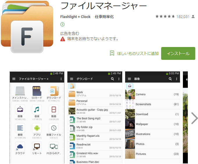 Androidは多くのアプリが利用できます。Android端末を入手したらまず最初にインストールしておくべきアプリのひとつに「ファイルマネージャー」があります。このアプリは名前の通り、本体ストレージやSDカードに保存されているファイルにアクセスして移動・コピーしたり、不要なファイルを削除するためのアプリです。「ファイルマネージャー」を利用すれば、Windowsパソコンの「マイコンピュータ」をクリックしてエクスプローラーウインドウを起動して個別にファイルにアクセスをするのと同じことが、Androidでもできるようになります。ちなみに「ファイルマネージャー」は、Google Playから無料でインストールすることができます。