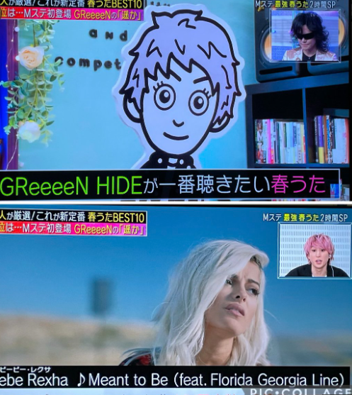 この日、番組では「春うた」ベスト10が発表され、番組終盤「GReeeeN」の『遥か』が第1位にランクインすると、HIDEが同楽曲について語るスペシャルインタビューが流れました。