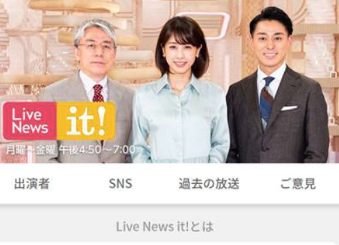「Live News it!」のホームページによると、番組名について【it!とは、「そうそう!」「それそれ!」という“共感”を表しています。 Live News it!は、ニュースを通じてみなさまと “きょう一日を共感できる”番組を目指します】としていますが、共感どころか視聴者から反感をかう結果となってしまいました….