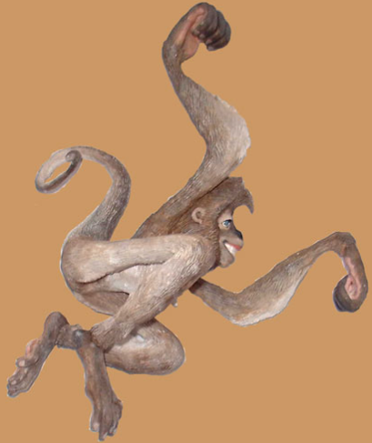 手は4本で親指がない、シッポの先は毛がなく滑りにくいので、物に巻きつけるには便利でした。
