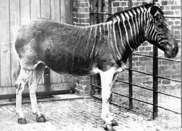 上の写真は生きているクアッガの唯一の写真で、1870年にロンドンのRegen’t Park動物園で撮影されたものです。