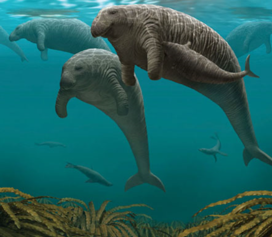 1741年にベーリング海で発見されたほ乳類で、ジュゴンやマナティーよりも大きく、体長7.9m、体重3トンほどまで成長します。