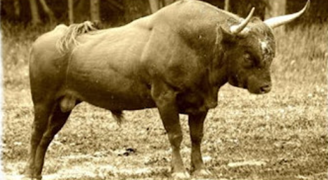 ヨーロッパで絶滅した動物として有名なオーロックス。数百万年前にインドあたりで生まれて中東やアジアに移動、25万年前にヨーロッパにも到達したようです。中世には乱獲や諸侯が狩猟の対象としたため数が減り、1564年に行われた調査では残り38頭にまで減少。1627年にポーランドのヤクトロフカの森で最後の雌が死にました。