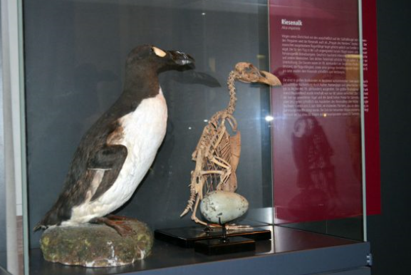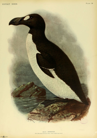 狩猟によって数が減少、1844年6月3日にエルダイ岩礁上で1羽が棍棒で殴り殺され、1羽が絞め殺されたことで絶滅しました。このつがいは抱卵中でしたが、卵は殻が割れてしまっていたとのこと。