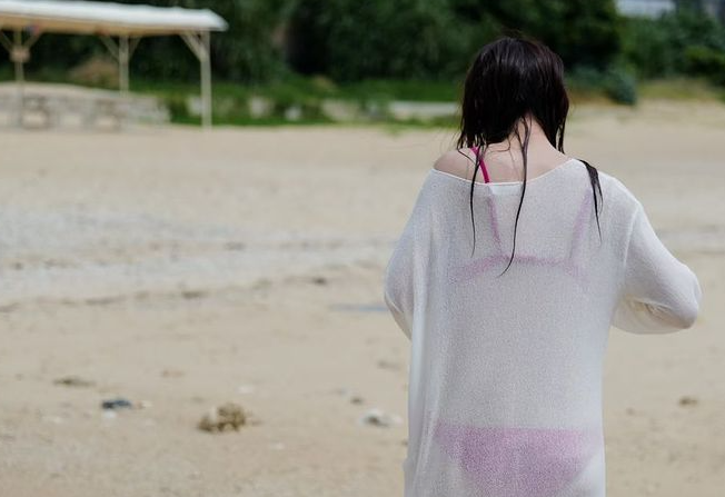 中でも、浜辺でピンクの水着を着た鷲見アナの後ろ姿を映した写真にて、水着の上に来たニットが濡れて透けて見える様子があり、歓喜の声が上がっています。