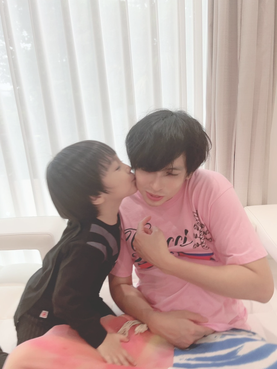 アレクさんは、今月12日に「ダースベイダーのキャップあげました♡」というタイトルでブログを更新しました。アレクさんの頬にチューをする息子さんの写真と共に「おねだり上手でね のんちゃんがまいにちのように カゲトラに貢いでます」と綴り、息子に貢ぐ川崎さんについて明かしました。