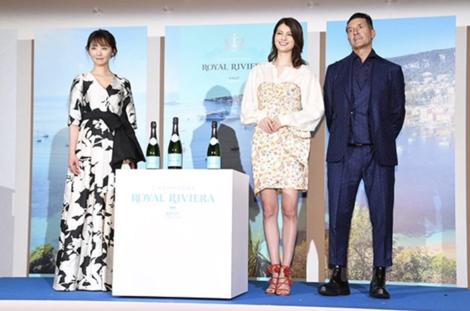 27日、都内で開かれた高級シャンパン「ROYAL RIVIERA」(ロイヤルリビエラ)の日本上陸発表会に、応援ゲストとしてモデルのマギーさん(27)、タレントのおのののかさん(28)、パンツェッタ・ジローラモさん(57)が出席しました。