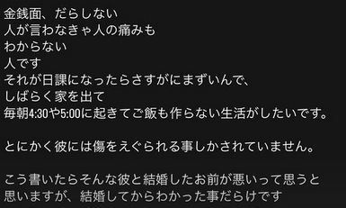 結婚からまだ1ヶ月というのに夫への不満をぶちまけたのです!