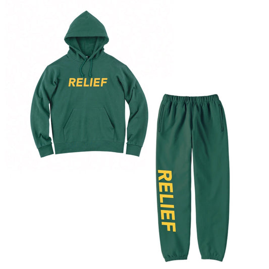 販売された商品はフーディとスウェットとなっており、上下セットの「RELIEFパーカー&スウェットパンツ(裏起毛セット)」(1万7,400円)や、スウェット単品の「RELIEFパンツ(裏起毛)」(9,500円)などがあります。
