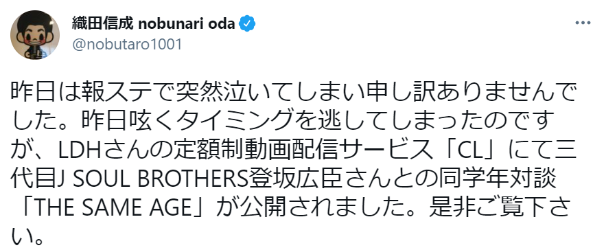 翌日には、自身のツイッターを更新し「昨日は報ステで突然泣いてしまい申し訳ありませんでした。」と謝罪しました。