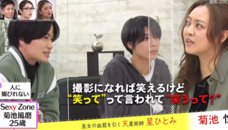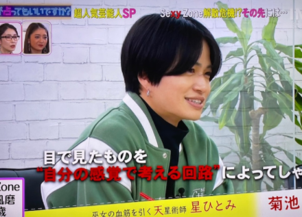 菊池さんは自分の占われる順番が来くと「怖ぇ…」と不安な表情に。星氏が菊池さんの性格を見ていくと、「“ジャニーズの星”が入ってないです」と断言し、菊池さんは「ジャニーさーん!」と絶叫。