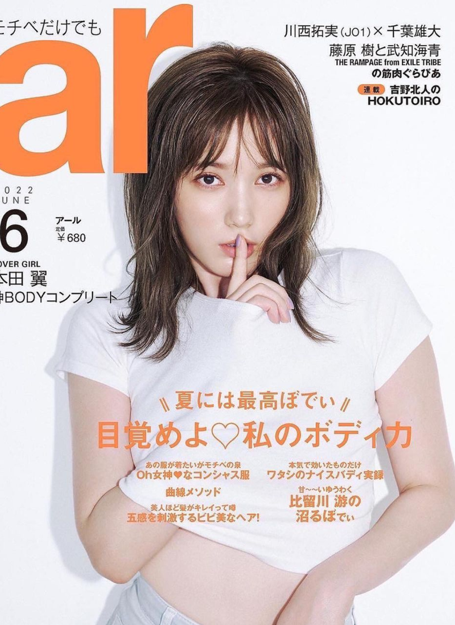本田さんは同誌の表紙にも載ったことがあり、その際は白色のミニTシャツ姿で登場していました。今回のインスタでも同じ衣装で手をTシャツの下からいれて、唇に触れるポーズを見せ、ナマ肌を大公開しながら「『ar』6月号、見てね」とウインクサービスまでしています。