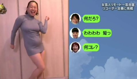 今回はリモートで一芸マスターを目指すリモート一芸合宿ということで、自宅に居る女芸人たちのもとに届いたのは、リコーダー。