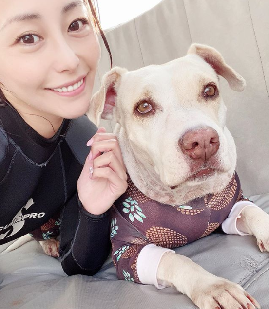 「二年前からダイビングにハマって世界観が変わりました。オトナになってからはじめてハマることがあるってそれだけ幸せな気がする」とつづり、犬とのツーショット写真を披露しています!